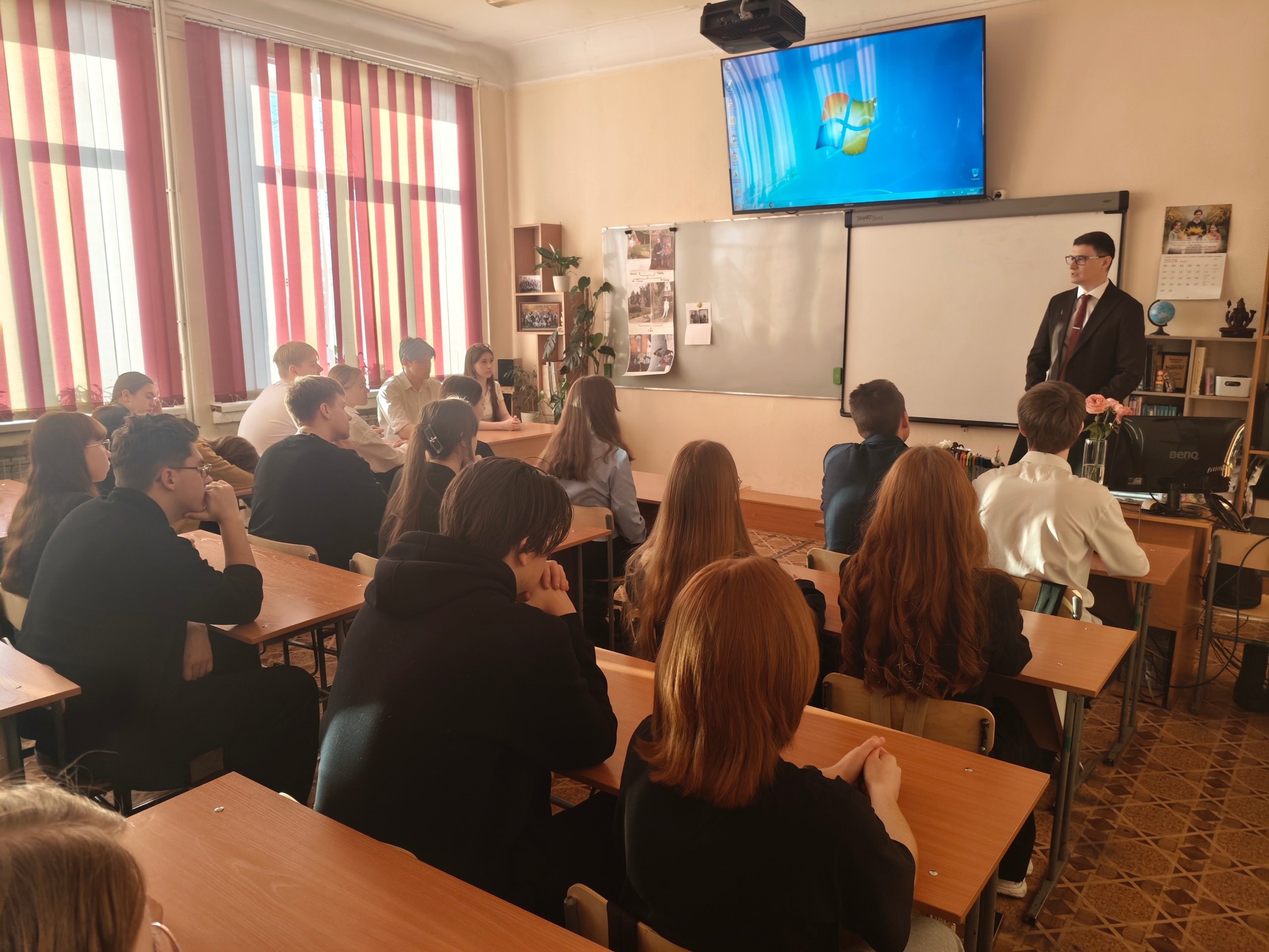 Особое внимание в ходе встречи было уделено вопросам профессионального самоопределения и формированию личной ответственности за выбранный жизненный путь. Нотариус поделился со школьниками своим профессиональным опытом и рассказал о том, какие знания, навыки и личные качества необходимы для достижения поставленных целей в юридической профессии.